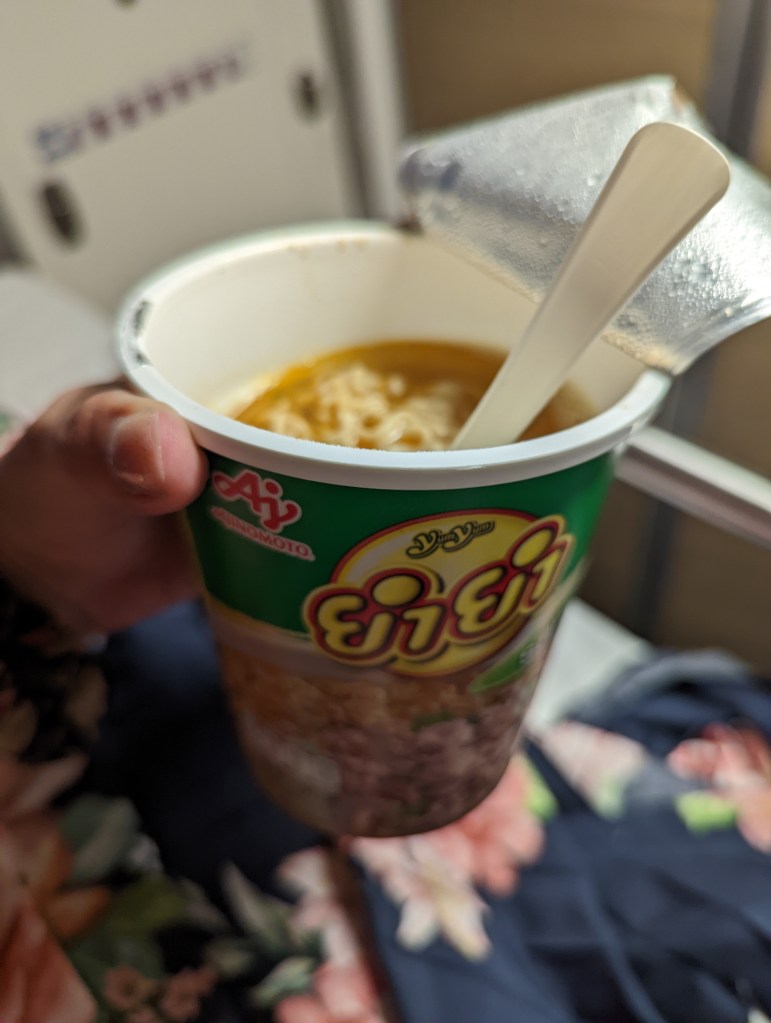 I was told they didn’t provide food on the trains, so I brought some snacks I’d bought earlier that day to tide me over til the morning. However, once we were settled, they provided us with a cup of noodles and tea/coffee for a small fee, which I gladly accepted. The train wasn’t very bumpy, so it was easy to eat from my bunk.