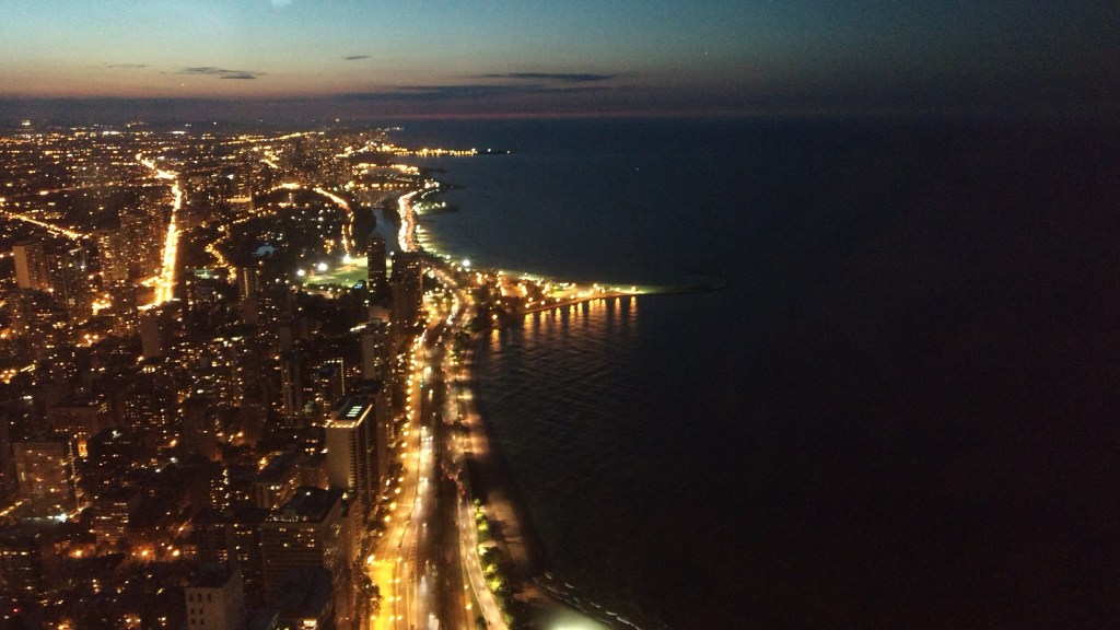 The Willis/Sears Tower is taller and, instead of a paid “tilt” experience, it’s Skydeck has free glass floors you can step out on to view the ground 1,350 feet below you. Definitely more of a thrilling experience. One side of the viewing deck has a gorgeous view of the skyline and lake, but the other looks out onto the flat expanse of highway and suburbs, which personally isn’t as exciting to me. But, choose whichever experience appeals to you most.