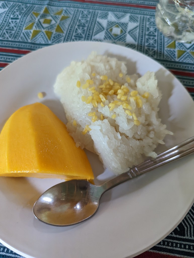 After walking for a while, we split up so the elephants could continue eating in the forest while we went on to eat some lunch of our own. The sanctuary provided us with a delicious meal complete with papaya salad and mango sticky rice.