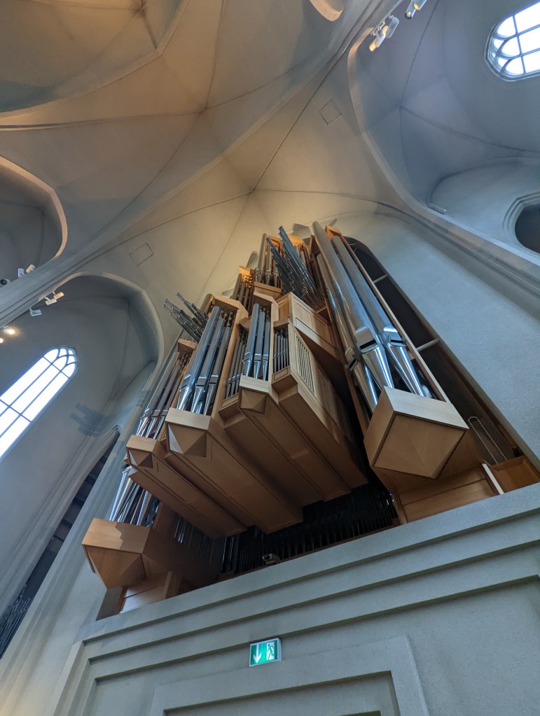 I happened upon the iconic Rainbow Street which leads up towards the famous landmark Hallgrimskirkja (which means the Church of Halgrimur). Built in 1986, this concrete and granite structure is relatively new and reflects Iceland’s simplistic architectural style while connecting it with the country’s natural elements—specifically basalt columns. I stopped by the church and admired its external architecture as well as the unique pipe organ inside. Though, I was really surprised to see the inside of the church looked quite mundane. I suppose it was an unfair comparison considering I’d visited some very old and elaborate cathedrals while in the UK.