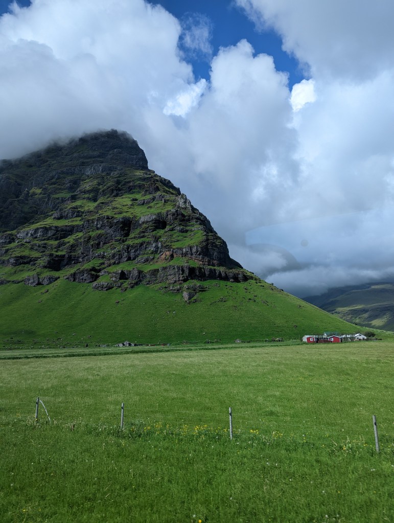 I had just come from Scotland where I’d been in the lush green Highlands for a few days. Some people compare the Highlands to Iceland to determine which is “better”, and while they’re both stunning, they are impossible to compare. Scotland does have some dramatic sights, but much of the Highlands are very hilly. Iceland on the other hand has dramatic mountains and cliffs which are all made of volcanic rock, making the deep green really pop in contrast to the dark rock and soil beneath, as I’ve mentioned many times throughout this experience.