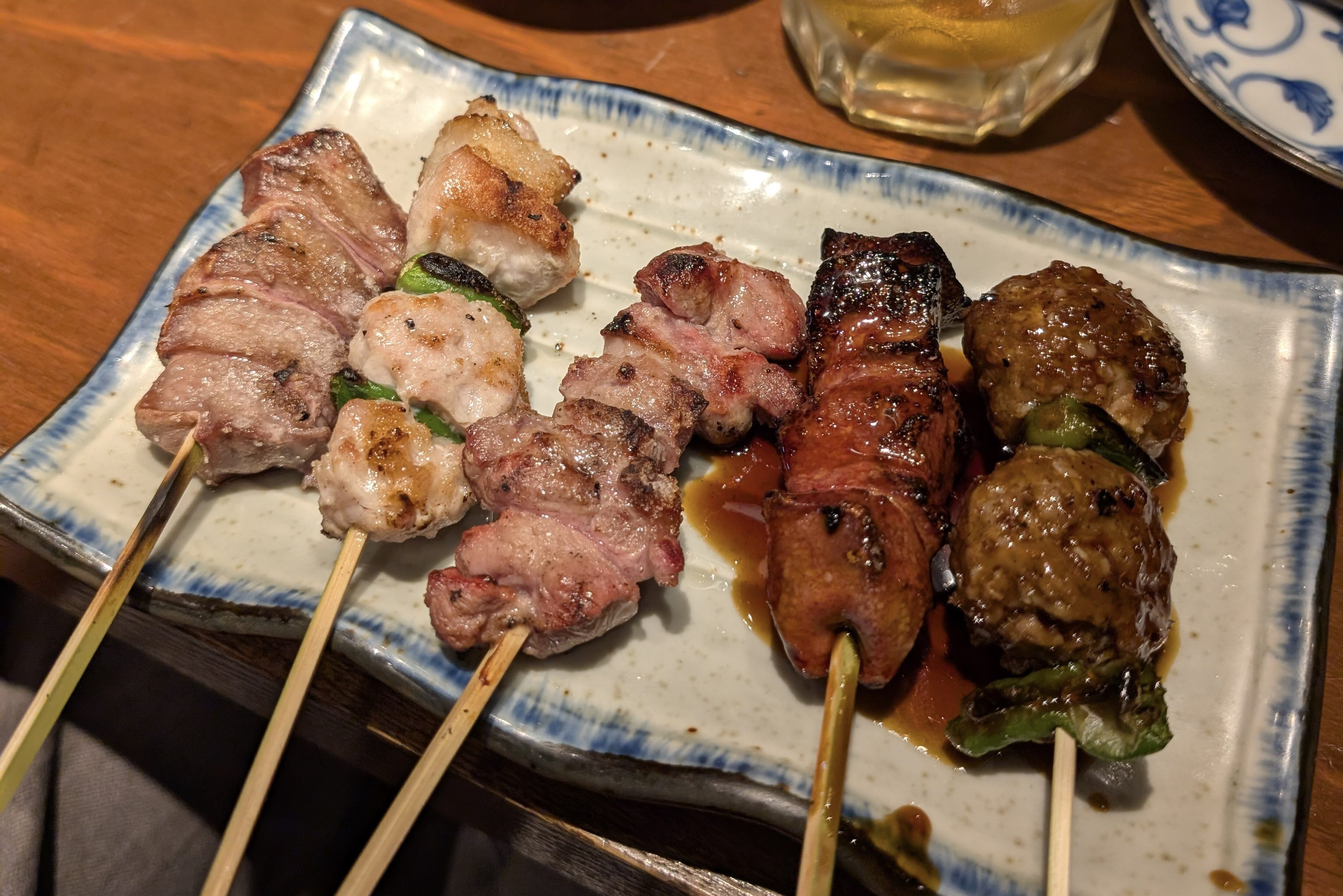 If you can’t find any bars with visible open seating, most have an upstairs you can squeeze into. After walking the length of the yokocho and back, my partner and I stopped at a random izakaya and shared a couple pork and chicken skewers, then went to Bar Albatross just down the alley.